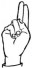 На ћирилици написано АНДРИЈА ГЛУШИЋ састоји се из 13 слова [?]. Исписано ћириличном једноручном азбуком за глувонеме: